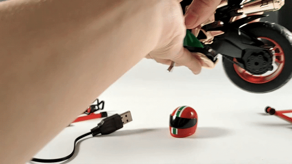 To motocykl w skali 1:9, który wygląda i brzmi jak miniaturowa wersja prawdziwej maszyny torowej.